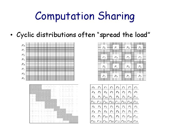 Mapping and Data Sharing • Partitioning and Mapping often induces the need for communication. • Changes in mapping schemes can reduce communication needs • Partitioning and Mapping often create load imbalance due to indeterminate computation times • Changes in mapping schemes can reduce load imbalance