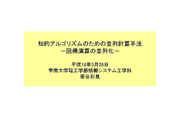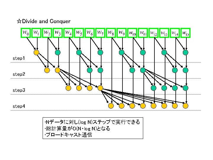Parallel Cyclic Reduction step 1 step 2 step Slides: 7 Download presentation ☆(Parallel) Cyclic Reduction step 1 step 2 step 3 step 4 • Nデータに対し(log N)ステップで実行できる • 総計算量がO(N・log N)となる(divide and conquerよりも多い) • 1対1通信 ☆(Sequential) Cyclic Reduction step 1 step 2 step 3 step 4 step 5 step 6 step 7 • Nデータに対し(2*(log N)-1)ステップで実行できる • 総計算量がO(N・log N)となる(divide and conquerよりも少ない) • 1対1通信