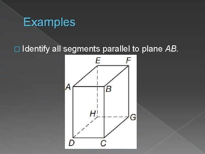 Parallel Planes � Parallel planes are planes that do not intersect.