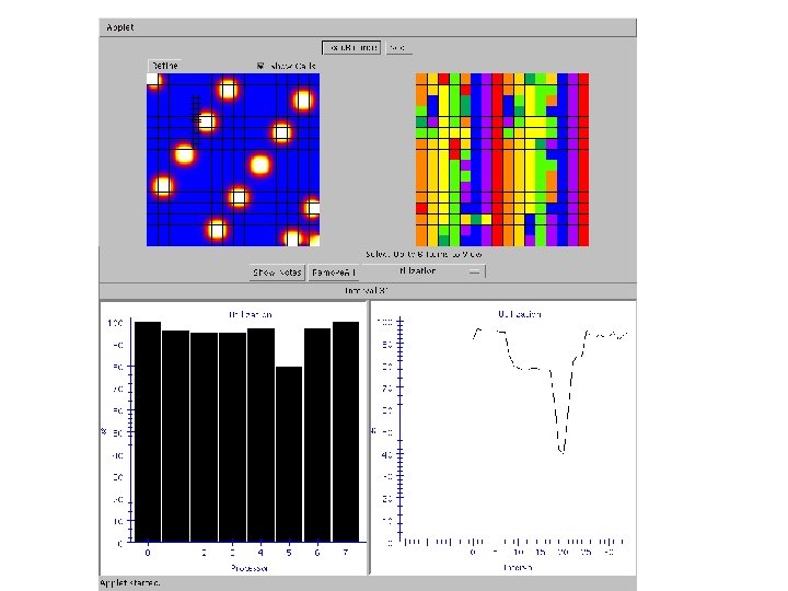 Load balancing demonstration • To test the abilities of the framework – A simple problem: Gauss-Jacobi iterations – Refine selected sub-domains • App. Spector: web based tool – Submit parallel jobs – Monitor performance and application behavior – Interact with running jobs via GUI interfaces