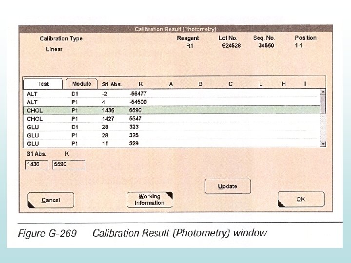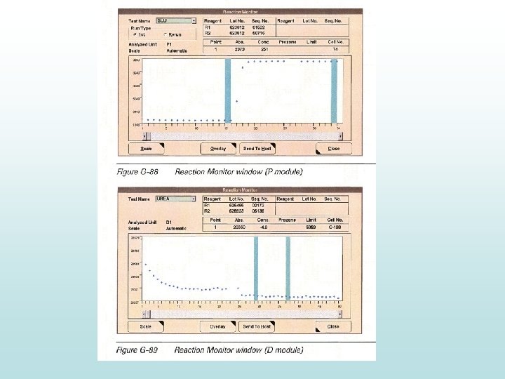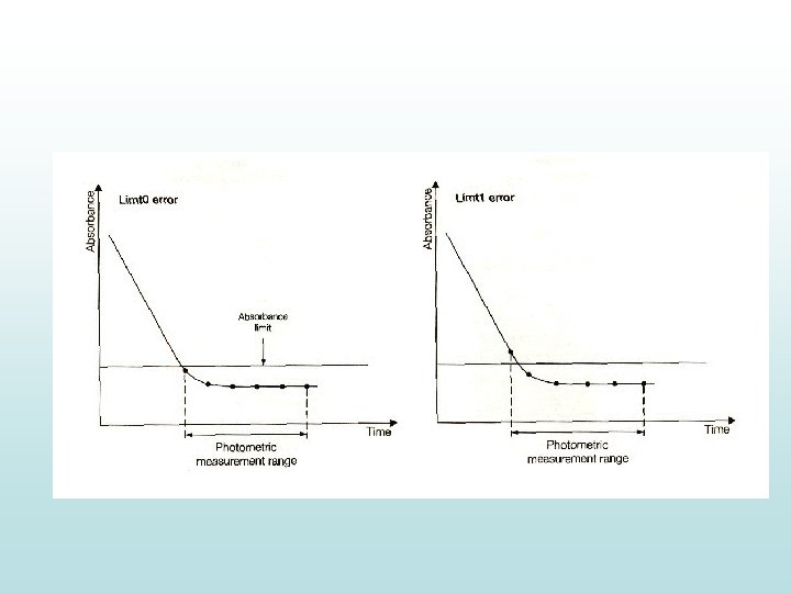 Test na linearitu • Je prováděn automaticky u všech kinetických metod • Linearita je kontrolována pomocí lineární regresní analýzy. Není-li splněna, vzorek je označen chybovým hlášením (př. Lin. ) Test na dodržení absorbančního limitu • Naměřená absorbance vzorku je tak vysoká, že nelze zajistit spolehlivé výsledky • U vzorků se objeví chybové hlášení a musí se ředit • Integrita výsledku je zajištěna nastavením absorbančního limitu Test na kontrolu vyčerpání substrátu • Uplatňuje se absorpční limit i kontrola linearity • Není-li reakce lineární, do výpočtu jsou zahrnuty pouze body z lineární oblasti