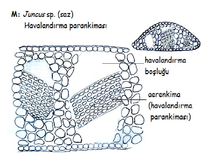 Havalandırma parankiması, geniş, bol hücrelerarası boşluklar içeren, gazları depo edip havalandırma görevi gören bir dokudur. Juncus gibi havalandırma boşlukları iyi gelişmiş bitkilerin gövdelerinde yıldız şeklinde parankima hücreleri yer almaktadır. Materyal: Juncus sp. (saz), havalandırma parankiması (gövde, enine kesit)
