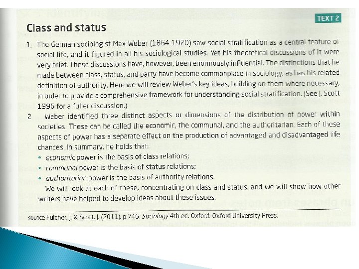 Suggested summary In their text on class and status, Fulcher and Scott (2011, p. 746) report the work of Weber. They state that Weber’s theory of social stratification is brief but highly influential, with his disctinction of class, status, and partly being widely accepted. Weber proposed three key aspects of power in society: economic, communal, and authoritarian. Evaluate this summary using the ‘ 4 Cs’ criteria!