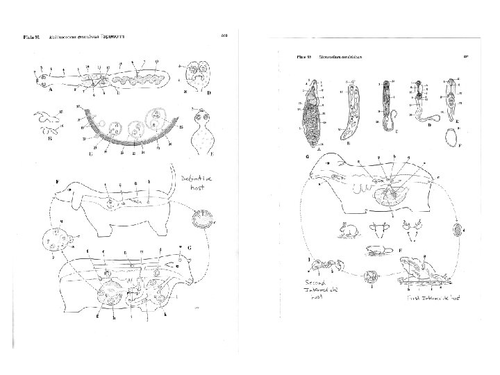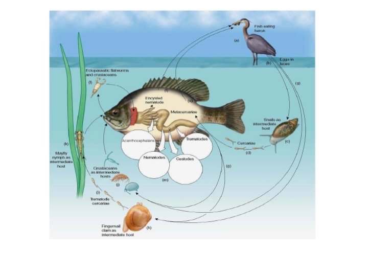 Adaptations for parasitic life: Attachments to adhere to host‑ internally or externally Nutrition‑ often feed on food digested by host (gut parasites, liver parasites) Reproduction: often use hosts' GI / urinary tract to release specific stages into the environment. Others may use resistant stages ie cysts to survive periods in environment Survival: dependent on their ability to withstand digestive juices, local and systemic host immunological responses Some parasites need several different hosts for completion of life cycle‑ ie Dicrocoelium dendriticum a trematode) completes life cycle successively in sheep, snails, and ants. The modifications needed to live in vertebrate and invertebrate hosts and external environment are tremendous.