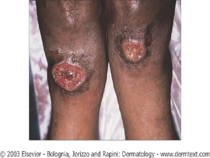 LEISHMANIASIS n Differential diagnosis: Pyoderma gangrenosum n Infectious causes of skin ulcers (streptococci, dimorphic opportunistic fungi, mixed bacterial flora) n Condiloma acuminata n Squamous cell carcinoma n