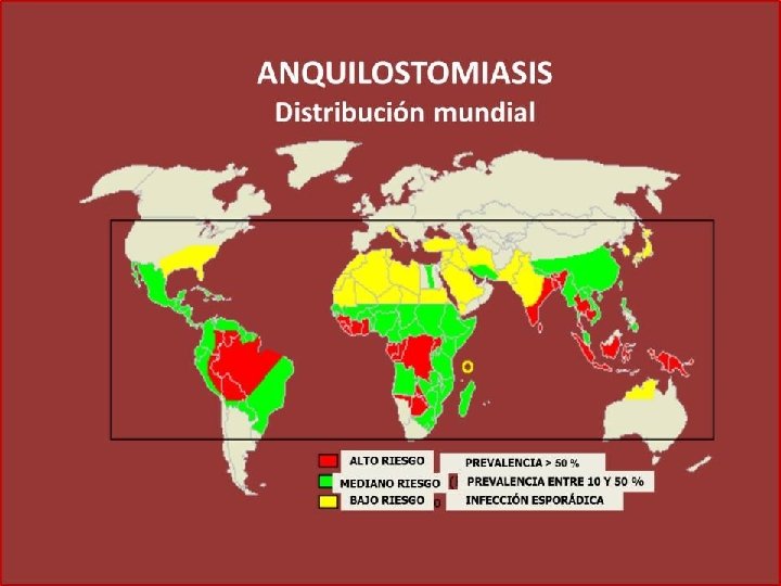 UNCINARIAS EPIDEMIOLOGIA: LA UNCINARIA ESTA AMPLIAMENTE EXTENDIDA, PARTICULARMENTE EN CLIMAS CALIDOS Y TROPICALES. LA UNCINARIASIS OCUPA EL SEGUNDO LUGAR EN FRECUENCIA EN EL MUNDO. SE ESTIMAN MAS DE 800 MILLONES DE PERSONAS PARASITADAS POR ESTOS NEMATODOS EN EL MUNDO LA FORMA INFECTANTE NO ES EL HUEVO, SINO LA LARVA FILARIFORME. LA LARVA PENETRA LA BARRERA CUTANEA. UN FACTOR IMPORTANTE ES EL CONTACTO DE LA PIEL CON EL SUELO.