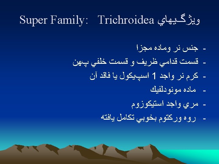 Order: Enoplida 1 - Super Family: Trichoridea Genus: - Trichuris - Trichinella - Capillaria - Anatrichosoma 2 - Super Family: - Dioctophymatoidea Genus: - Dioctophyma 3 - Super Family: - Mermithoidea