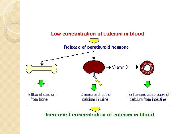 physiology of calcium homeostasis PTH ( parathyroid hormone ) Vitamin D Calcitonin( parafollicular cells of thyroid gland ) : it opposes the effects of PTH by : inhibiting osteoclasts from breaking down bone It inhibits CA reabsorption in renal tubular cells