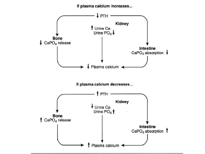 Regulation of PTH secretion • Secretion of PTH is inversely related to plasma [Ca 2+] because • Plasma Ca 2+ level is the dominant regulator of PTH secretion : • Plasma Ca 2+ level < 3. 5 mg/d. L stimulates PTH secretion • Plasmna Ca 2+ level > 5. 5 mg/d. L inhibits PTH secretion
