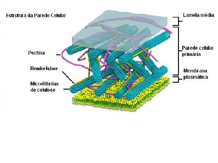 Características específicas da célula vegetal Parede celular Vacúolo Plastídeos Lamela média ou mediana ou Substância intercelular Composição: Substância Pécticas, Ca 2+, Mg 2+ Hemicelulose Função: manter juntas as paredes primárias de células adjacentes