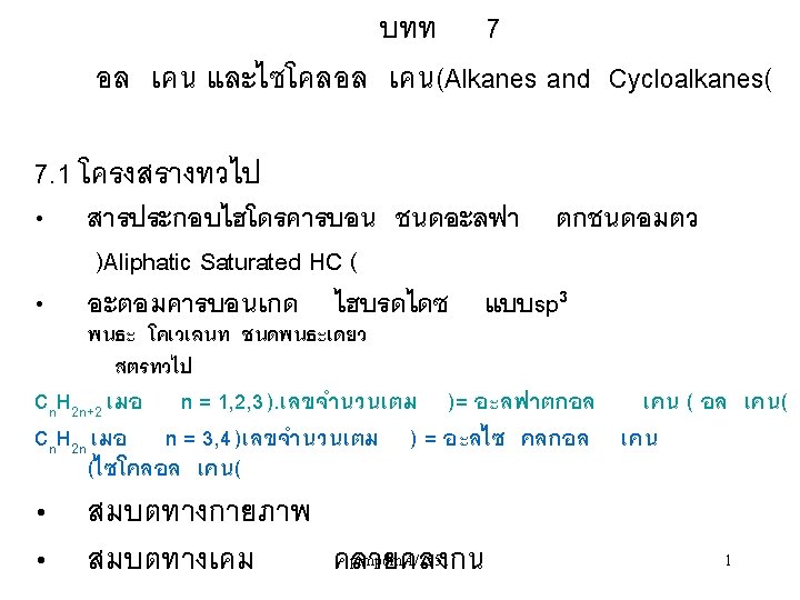 Cylopropyl-2 -propylcyclobutane Pentane 2 -Methylbutane 2, 4, 6 - Trimethylheptane pimporn 1/2551 13