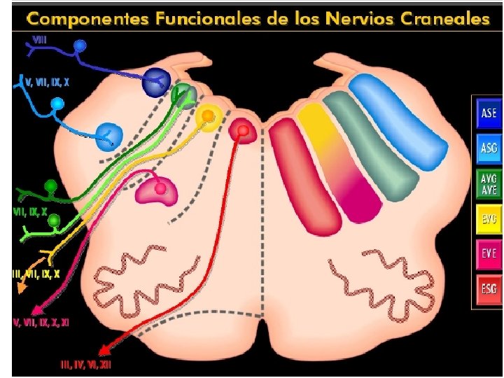 Nervios Craneales Concepto 7. Nervio Facial (par craneal VII) 8. Nervio Vestibulococlear (par craneal VIII) 9. Nervio Glosofaríngeo (par craneal IX) 10. Nervio Vago (par craneal X) 11. Nervio Accesorio (par craneal XI) 12. Nervio Hipogloso (par craneal XII)