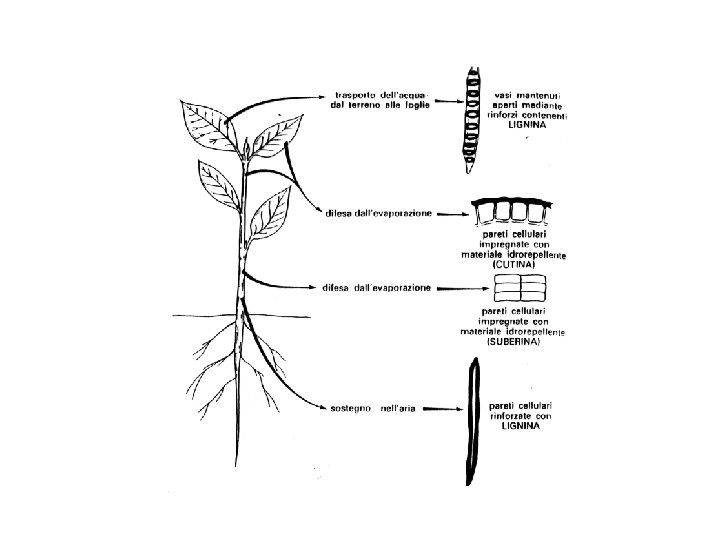 PARETE SECONDARIA cessazione crescita ispessimento della parete primaria per stratificazione di materiale • forma cellulare • sostegno meccanico della pianta • difesa • riduzione della traspirazione componenti: cellulosa (in strati sovrapposti) cuticola (cutina e cere) suberina lignina