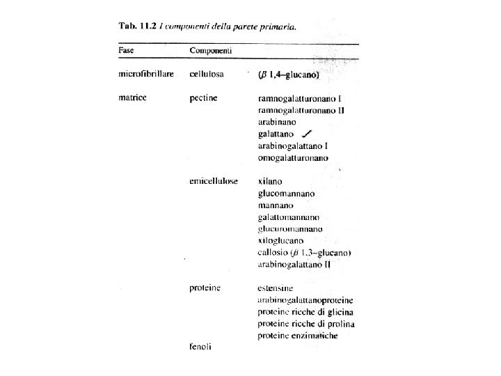 MATRICE fase amorfa della parete alto contenuto in H 2 O polisaccaridi proteine emicellulose pectine HRGP (estensine) GRP PRP AGP