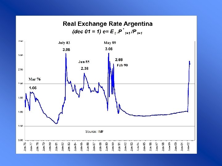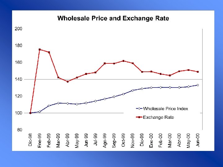 Paridad de Poder de Adquisitivo PPP Supuestos l Las tasas de interés reales son iguales entre países l En cada país la tasa nominal de interés se iguala a la suma de la tasa de interés real y la tasa de inflación l La diferencia entre las tasas de interés nominales entre países debería ser igual a la tasa de devaluación de sus monedas. Ecuación de arbitraje (Paridad de tasas de interés) æ Ee - E 0 ö ÷÷ Rlocal = Rexterior + çç è E 0 ø
