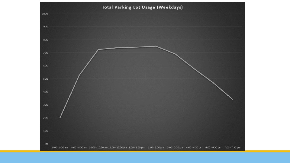 Next Steps Continue Parking Lot Counts during the Weekdays Increase Evening Parking Counts Increase Weekend Parking Counts Work on a system for On-Street parking counts