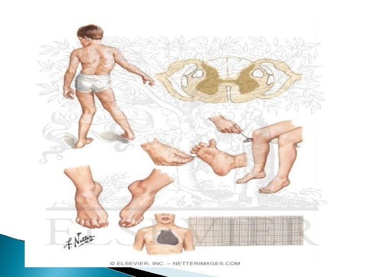 Hereditary spastic paraparesis �a group of inherited disorders in which the primary symptoms are progressive bilateral lower extremity spasticity and weakness caused by axonal degeneration in the spinal cord, maximally in the corticospinal tracts and the dorsal column fibers � Other names: familial spastic paraplegia, Strumpell. Lorrain syndrome � Progressive difficulty walking – classic presenting symptom � Cardinal features: symmetric lower extremity spastic paresis, extensor plantar responses � Tx: cold application, manual stretching techniques, splinting, serial casting, posture and body mechanics training, aerobic conditioning, and gait and dynamic balance training