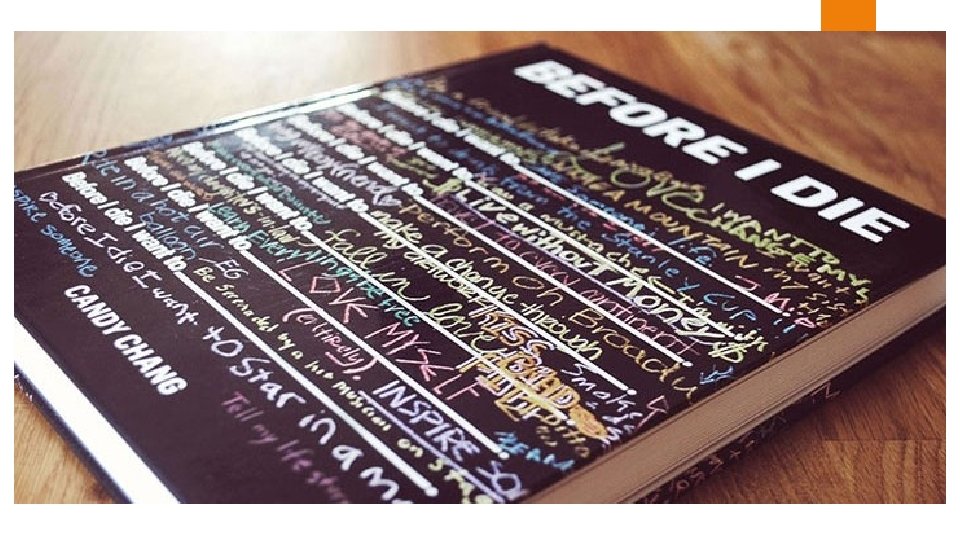 Les confessions chez Candy Chang L’artiste américaine Candy Chang a ouvert à Las Vegas une galerie où l’on peut déposer des confessions anonymes. Simple gadget, ou démarche authentique ? Après la mort brutale de l’homme qu’elle aimait, elle réfléchit sur le thème Before I die (avant de mourir). Que dire à ses proches, à ceux qu’on aime, à ceux qu’on voudrait aimer ? Le thème inspirera une peinture murale puis un livre (voir diapos 23 et 24)