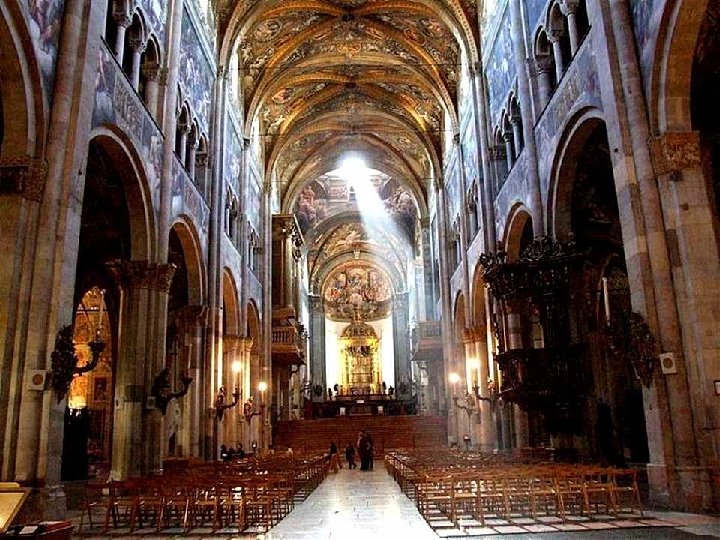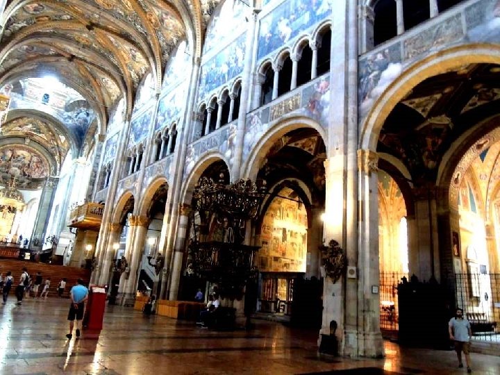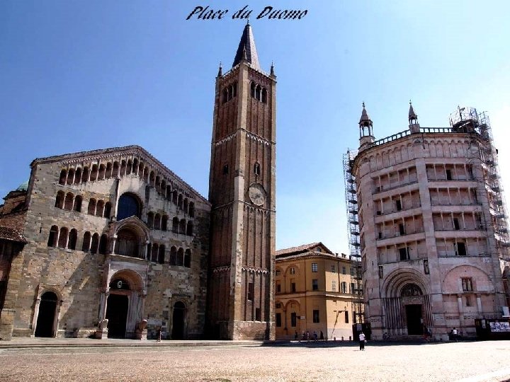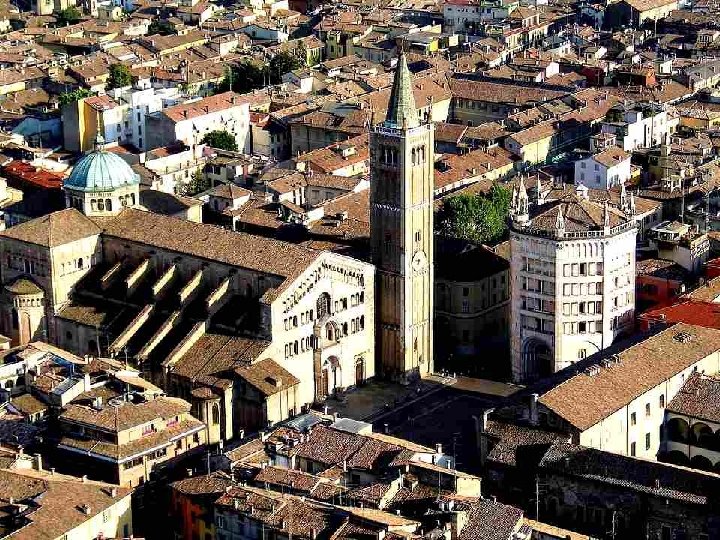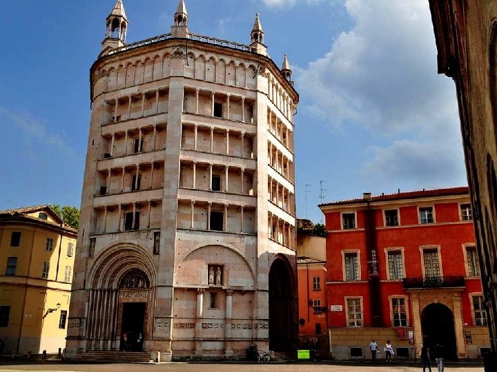 Le Baptistère est un édifice octogonal construit en marbre rose et avec le Palais de l’Évêque, qui remonte au XIe siècle, ils forment un fascinant ensemble médiéval. Des fresques de Parmigianino dans les chapelles et la coupole décorée de fresques du Corrège forment les éléments distinctifs de l’ Eglise Saint-Jean-l'Évangéliste. Vous pourrez admirer d’autres œuvres de Parmigianino dans l’Église Madonna della Steccata et du Corrège dans la Chambre de San Paolo du Monastère des Bénédictines. À proximité de cette dernière s’élève le Palais de la Pilotta, un complexe imposant commandité par la famille Farnèse, siège de la Bibliothèque, du Théâtre Farnèse, du Musée Archéologique National, du Musée "Bodoniano" et de la Galleria Nazionale, qui présente des œuvres du Corrège, de Parmigianino, Beato Angelico, Léonard de Vinci, Le Tiepolo, Canova, etc….