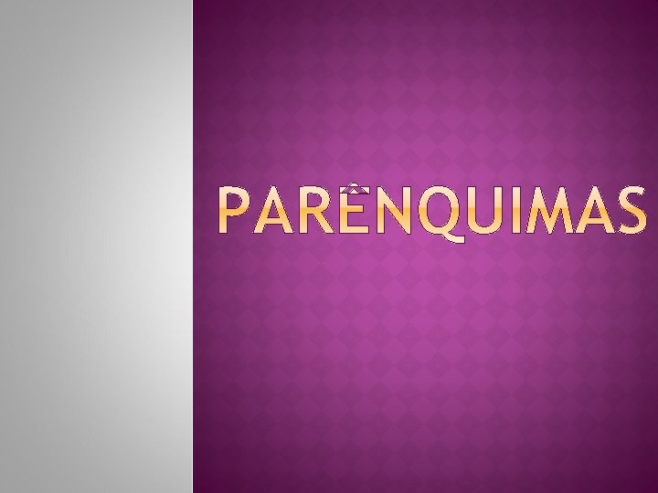 Parênquima: O tecido parenquimático pode ser encontrado em todos os órgãos da planta como um tecido contínuo de preenchimento. As células do parênquima são vivas, com forma variável e, ás vezes, com funções bem especificas. Os principais tipos de parênquimas são clorofiliano e o de reserva.