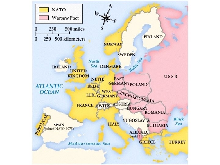 Red: Soviet Controlled, Warsaw Pact Blue: NATO Countries, Lighter Blue Later Joined NATO Albania: withdrew from Warsaw Pact 1968