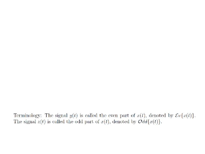 Any signal x(t) or x[n] can be expressed as a sum of two signals, one of which is even and one of which is odd. That is,