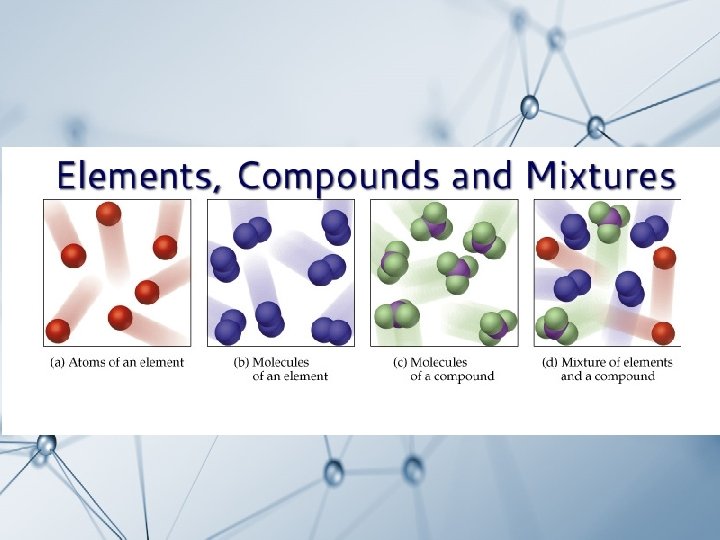 Compounds: A pure substance containing two or more kinds of atoms ________. The atoms are chemically _________ combined in some way. Often times (but not always) they come together to form groups of atoms called molecules. A compound is always homogeneous (uniform).