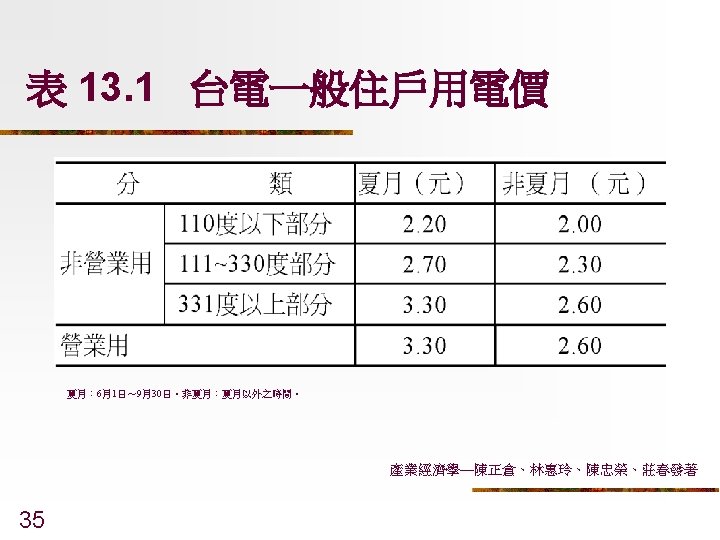 Two-Tier Pricing Systems n n n 34 At total output of QR average costs are 0 G. Under this system, monopoly profits (area PAAHG) balance the losses (area HFEJ). Here the “marginal user” pays marginal cost and is subsidized by the “intramarginal” user.
