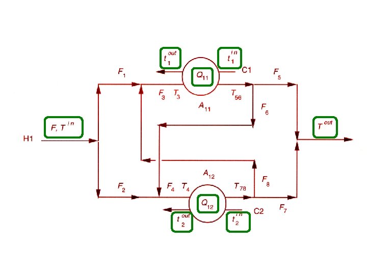 Basic Ideas of Superstructure • Each exchanger in HEN corresponds to a match predicted by the MILP model (with or without pinch partition). • Each exchanger in HEN should also have as heat duty the one predicted by MILP. • The superstructure will contain the stream interconnections among the aforementioned exchangers that can potentially define all configurations. • The flow rates and temperatures of stream interconnections in superstructure will be treated as unknowns that must be determined.
