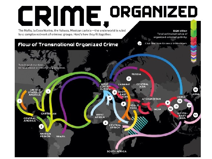 Org. Crime today… “’Mafia then is not an organization. It is a system of patron-client relationships that interweaves legitimate and illegitimate segments of Sicilian society. ‘Mafioso’ is not a rank or position within a secret organization. Rather it represents a type of position within the patron-client relationship of Sicilian society itself” (Albanese, p. 130).