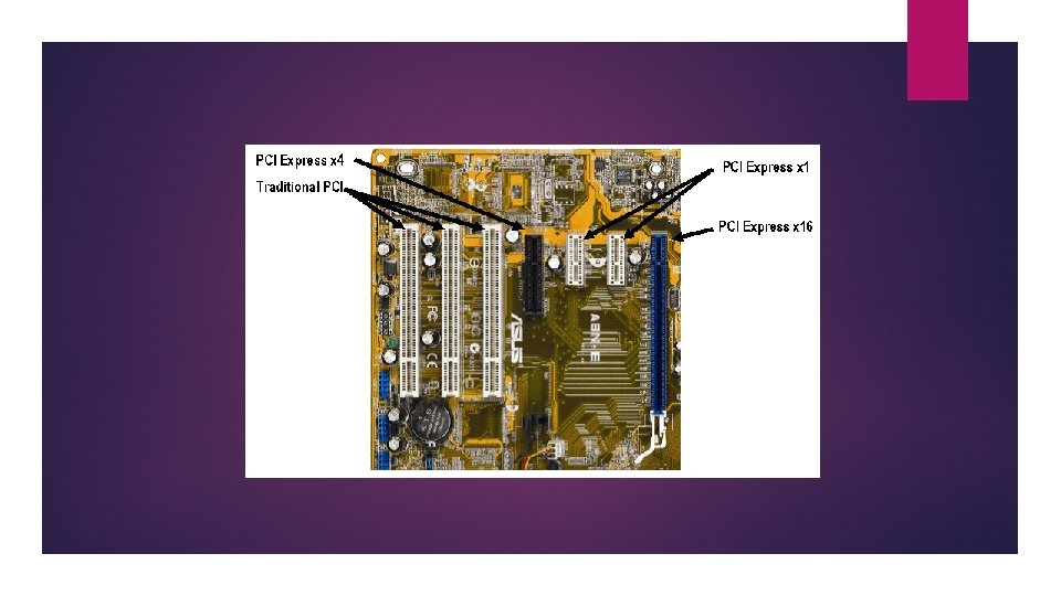 Ranuras AGP Se utilizan para conectar tarjetas madre. Actualmente ya no se usan en algunas tarjetas, porque son reemplazadas por las ranuras PCI.