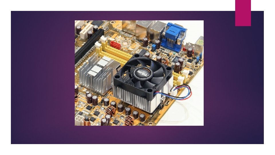 Ventilador o cooler Generalmente los procesadores, debido a su estructura, y a la velocidad, calientan, y para evitar ese sobrecalentamiento, se usan los Coolers. En las computadoras actuales la refrigeración de los procesadores es realizada a través de un disipador de calor, fabricado en aluminio o cobre, con un pequeño ventilador sobre el y un conducto de aire que extrae el aire caliente del gabinete.