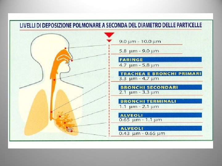 Particolato grossolano particolato sedimentabile di dimensioni superiori ai 10 µm Particolato fine - PM 10, particelle con diametro inferiore a 10 µm - PM 2, 5, particelle con dimensioni minori a 2, 5 µm Particolato ultrafine - PM 1, 0 con diametro inferiore a 1 µm - PM 0, 1, con diametro inferiore a 0, 1 µm Nanopolveri (nm)
