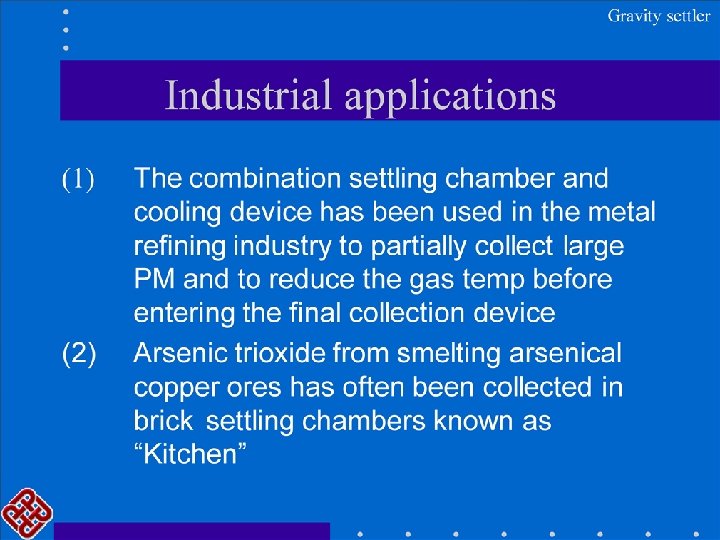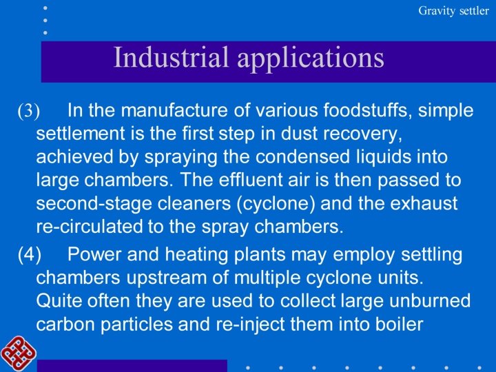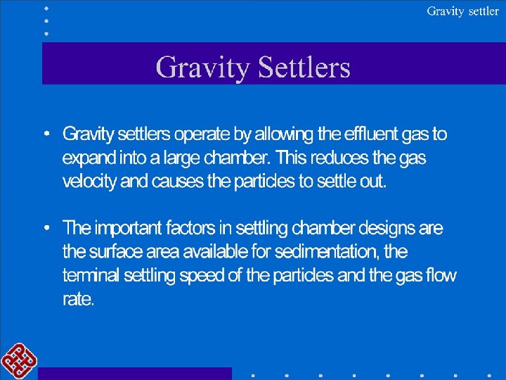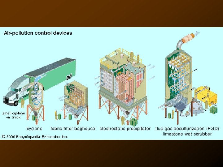 Cleaning up Particulate Matter – Control Equipment • Gravity and Inertial Separators • Mechanical Collectors (Cyclones) • Scrubbers • Electrostatic Precipitators • Fabric Filters