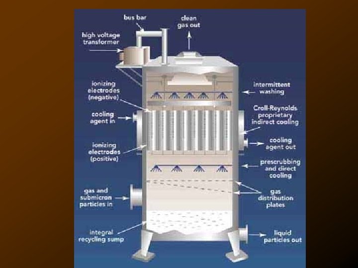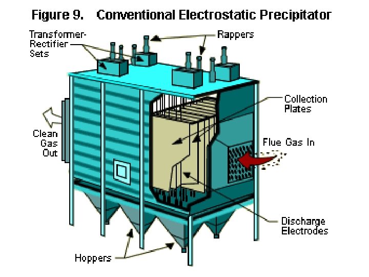 Electrostatic Precipitators Advantages: Good efficiency Disadvantages: Dependent upon resistivity of PM, cannot be used around explosive gases