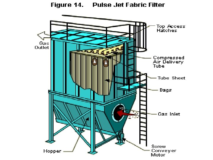Fabric Filters / Baghouses Advantages: Good efficiency for various sizes of particles Disadvantages: Not to be used around corrosive substances, explosive gases, or sticky and wet particles