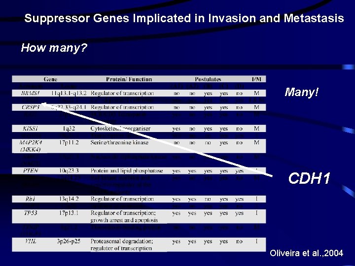 Suppressor Genes Implicated in Invasion and Metastasis How many? Many! CDH 1 Oliveira et al. , 2004