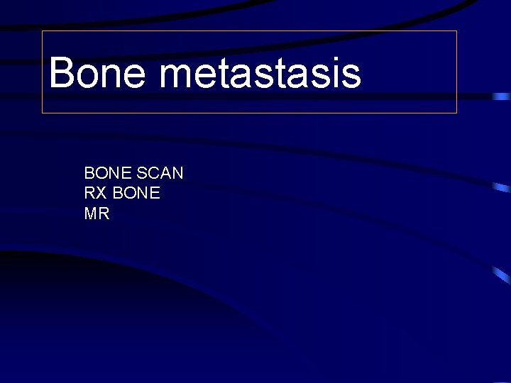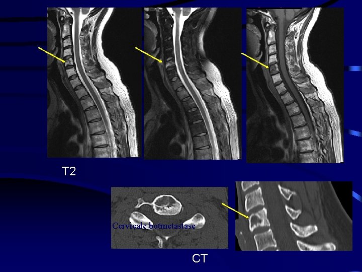 Bone metastases 1. Most frequent localtions are spine, femur, ribs, sternum, humerus. 2. 20 % isolated locations. 3. Cause pain. 4. Danger for cordcompression. 5. Apart from systemic therapy radiotherapy is given. 6. Radiotherapy induces callus formation and stabilizes the lytic zone. 7. 33 -50 % is pain free. 8. Recent publication (Wegener et al. 2012) mediane survival of solitary bone metastasis is 65 months. Prognostic factors: R 0 resection, abscence of visceral metastasis. Surgery with intent to cure had a positive influence on survival.