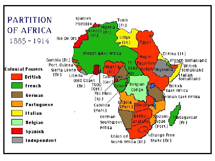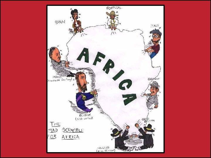 Berlin Conference • By the 1880 s, Great Britain, France, Germany, Belgium, Spain, and Portugal all wanted part of Africa. • To prevent a European war over Africa, leaders from fourteen European governments and from the United States met in Berlin, Germany, in 1884. • No Africans attended the meeting. • At the meeting, the European leaders discussed Africa’s land how it should be