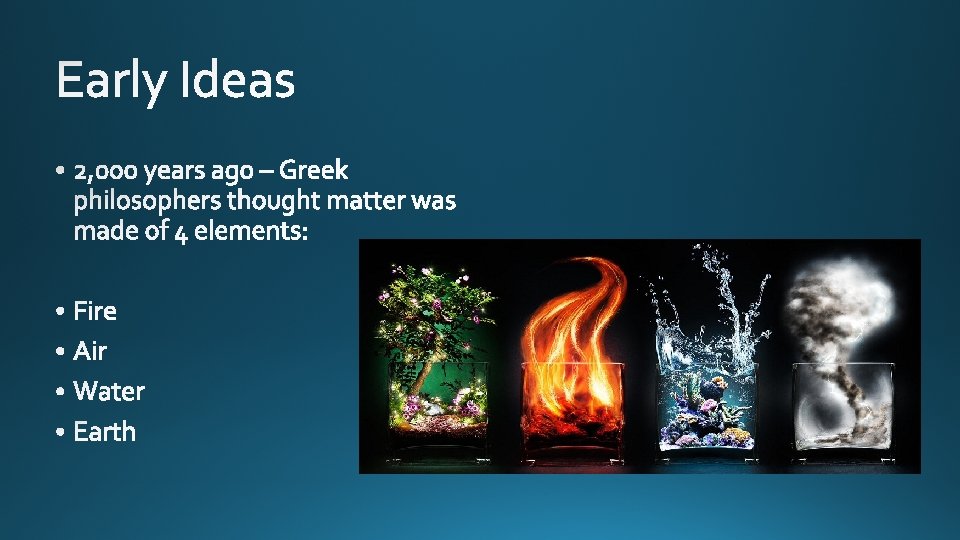 • Democritus – Matter is made of small solids that cannot be created or destroyed – Atom – Greek word meaning “can not divide” – Atoms moving all the time – Different matter = different atoms – His ideas were debated.