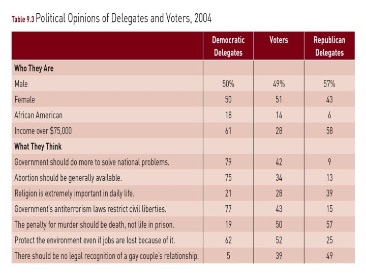 Nominating Candidates • Historical Methods →Caucus … still used, most notably in Iowa →National Convention • Direct Primary System →Determine votes of Convention Delegates →Closed vs. Open Primary →Caucuses vs. primaries • Criticisms: →Front loading; Image over issues