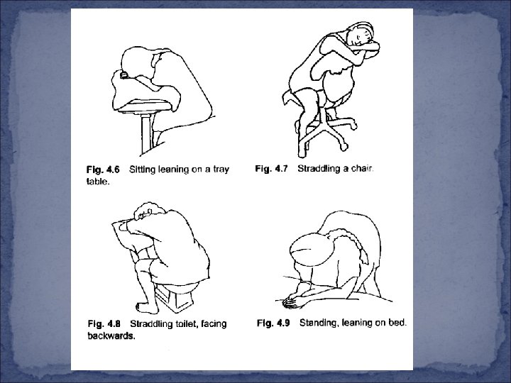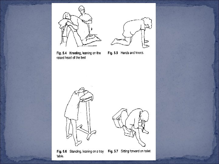 Encourage rotation of the trunk from Posterior Back pain is relieved l Squatting Position enlarge the Space in the Pelvic