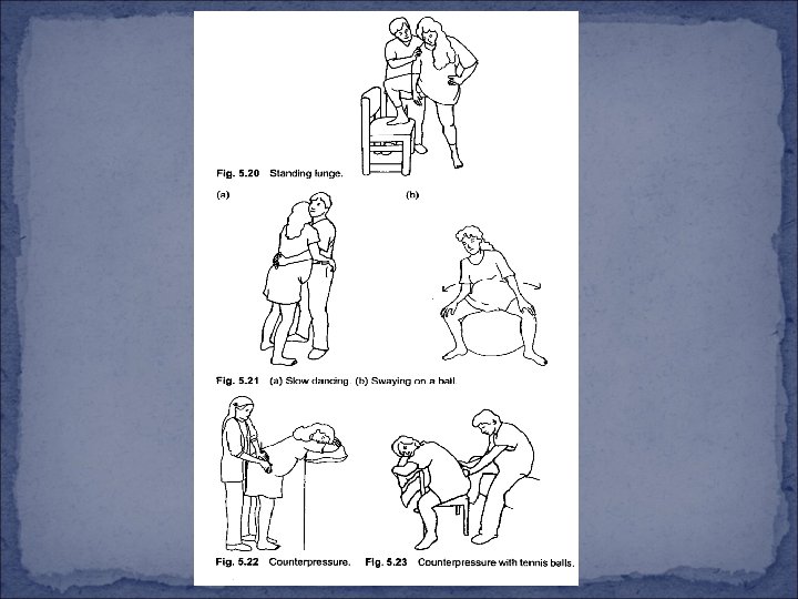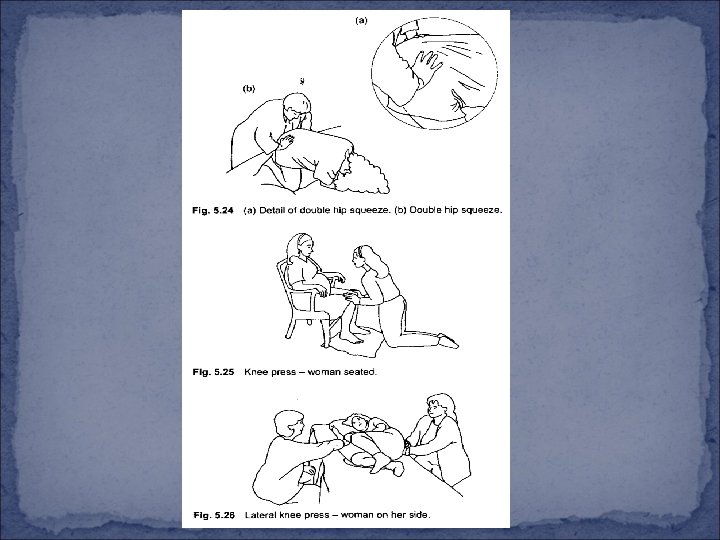 Physiological measures v Encourage to empty her bladder v Well hydrated but not over hydrated v Encourage to seek comfort v Encourage to relax her voluntary muscles