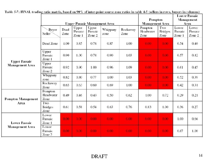 Trading ratio table • Grouped by management area and then point source zone – Three management areas • Upper Passaic, Pompton, Lower Passaic – Nine point source zones • • • Dead River Zone Upper Passaic Zone 1 Upper Passaic MA Upper Passaic Zone 2 Whippany Zone Rockaway Zone Pompton Headwaters Zone Pompton MA Two Bridges Zone Lower Passaic Zone 1 Lower Passaic MA Lower Passaic Zone 2