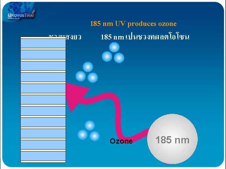 แตชวงแสง 254 nm decomposition of ozone 254 nm เปนชวงแสงทแยกโอโซนจาก O 3เปน O 2 254 nm breaks O 3 back down to O 2 254 nm
