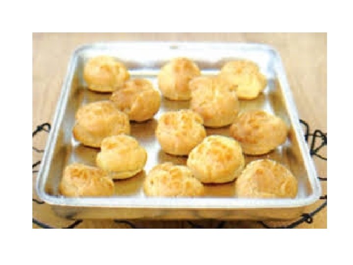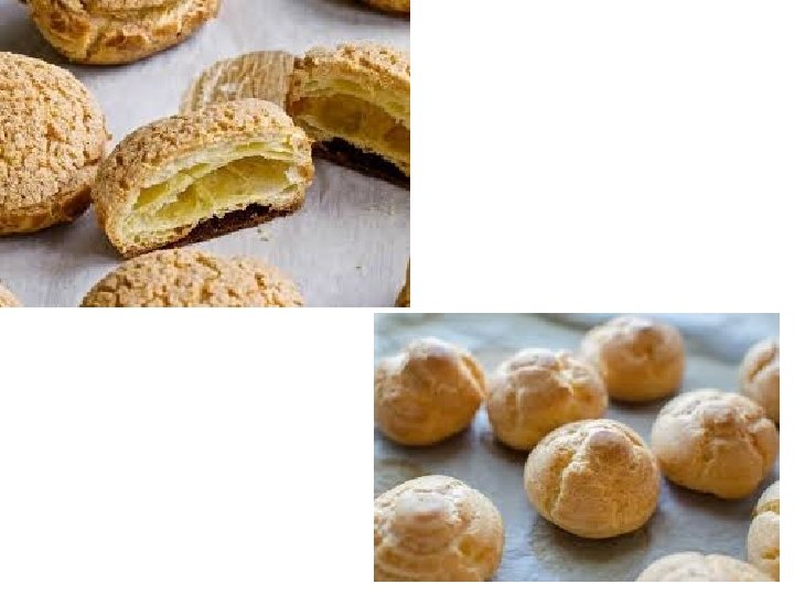 • Eggs are then beaten into the dough to further enrich it. This high percentage of water causes the pastry to expand into a light, hollow pastry. Initially, the water in the dough turns to steam in the oven and causes the pastry to rise; then the starch in the flour gelatinizes, • Gelatinization: - Starch gelatinization is a process of breaking down the intermolecular bonds of starch molecules in the presence of water and heat, allowing the hydrogen bonding sites (the hydroxyl hydrogen and oxygen) to engage more water. This irreversibly dissolves the starch granule in water. • thereby solidifying the pastry. Once the choux dough has expanded, it is taken out of the oven; a hole is made in it to let the steam out.