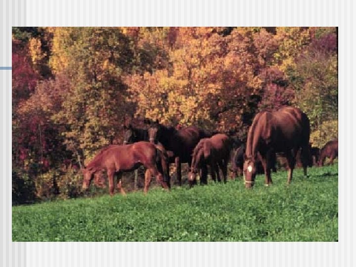 Grazing Horses n n Animals more complex pasture Selective grazing Manure and urine Treading - Walking, running, jumping, lying down, scratching, pawing
