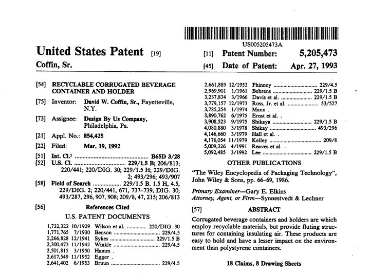 “Less is More” (Enforceable) ‘ 473 Coffin Sr. – tubular preformed Narrower, longer claim Corrugated paper strip w/ “slotted” closure Noon prior art holder