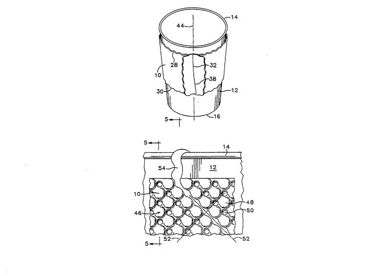 P. 46: “A cupholder comprising a strip of insulating material, said strip having two ends capable of interlocking to form a band for receiving a cup. ”