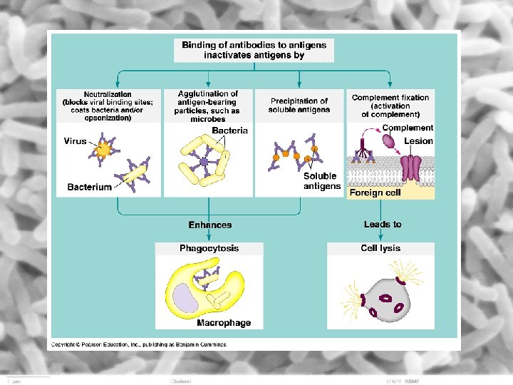 3. agglutination – antibodies have multiple binding sites and may bind to antigens on two different microbes holding them together – more and more antibodies link up with antigens on different microbes clumping them together – this enhances phagocytosis 4. complement reactions – the antibody-antigen complex on the surface of an invading cell may trigger a series of reactions with blood proteins called the complement system – these complement proteins bind to antibodies and attract phagocytic cells or may directly destroy invaders by creating holes in their plasma membranes (similar to natural killer cells)